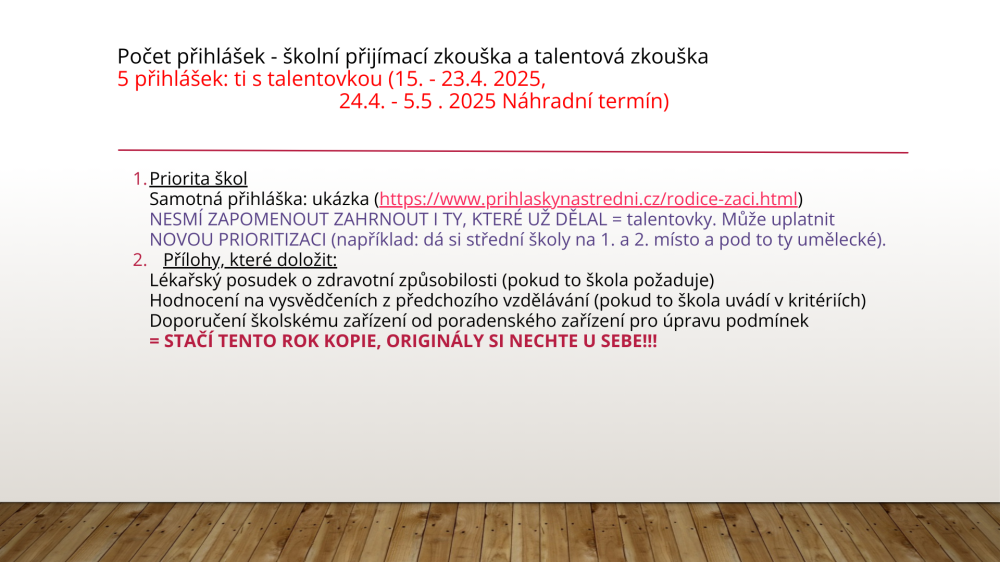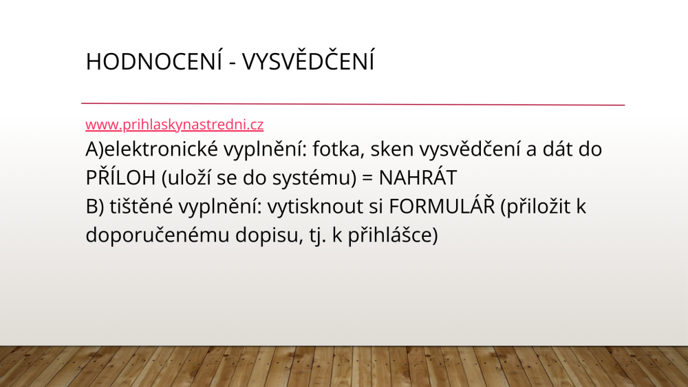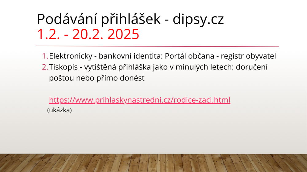 Informace k podávání přihlášek na střední školy