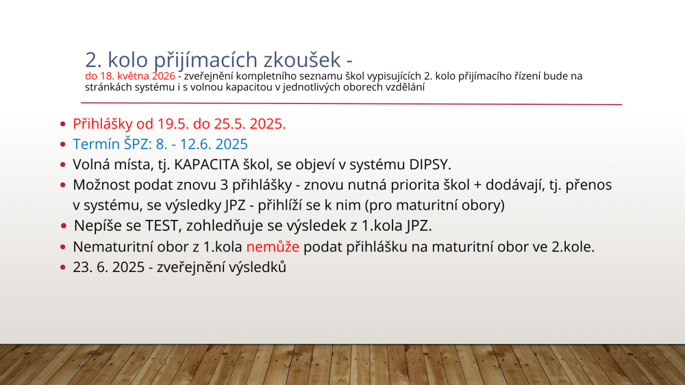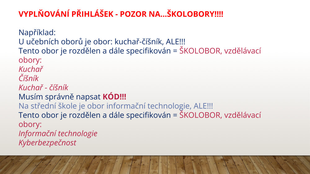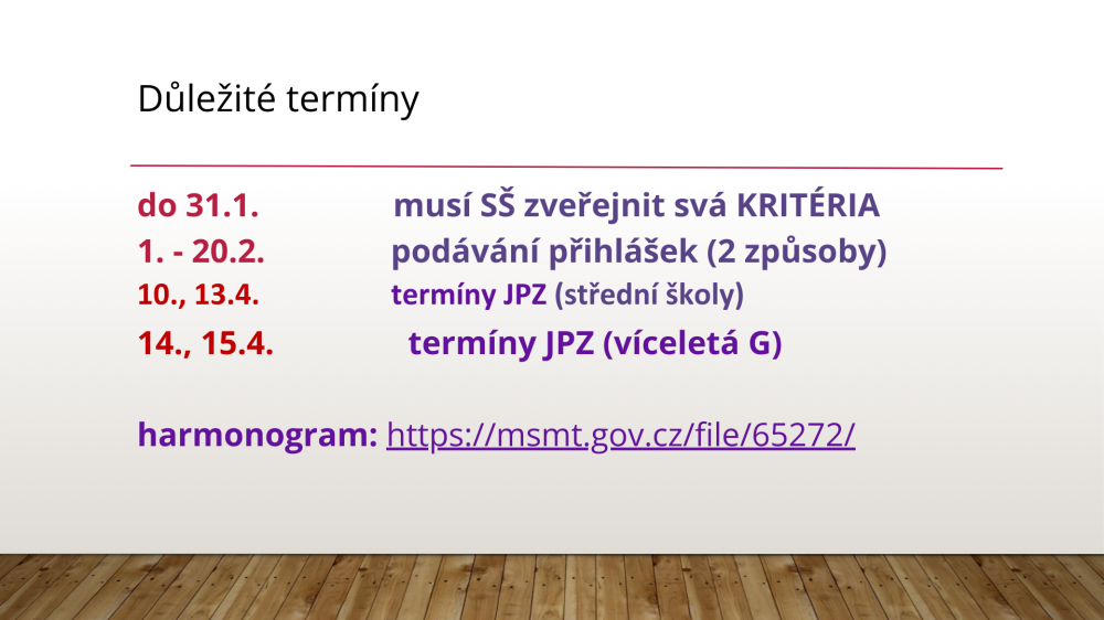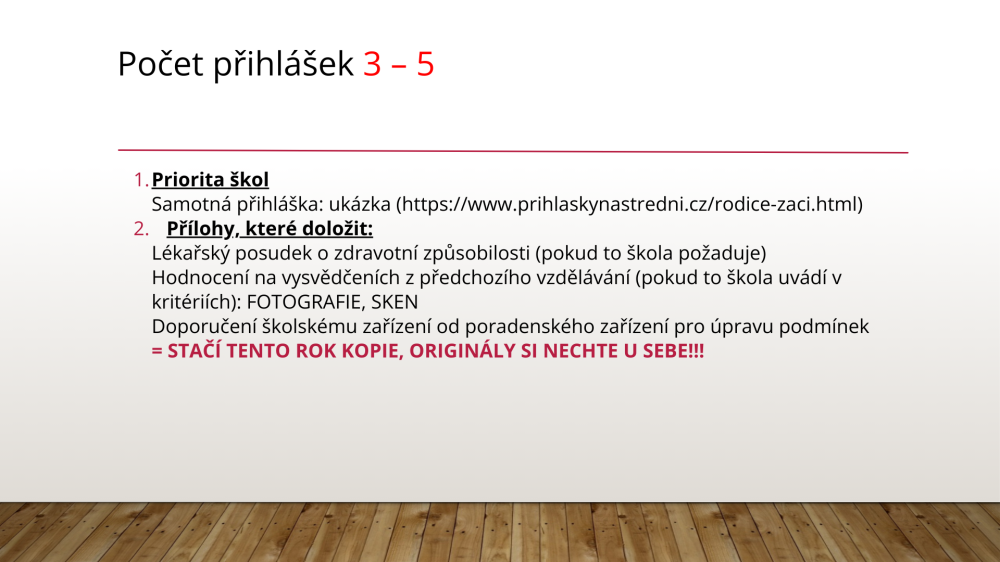 Informace k podávání přihlášek na střední školy