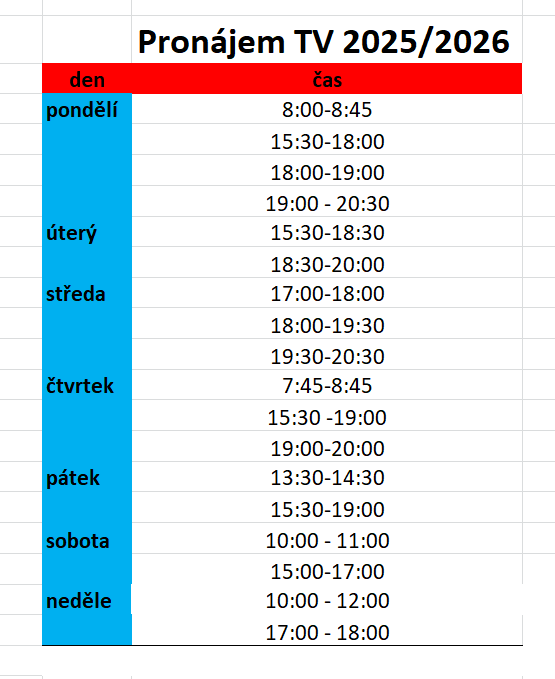 využití tělocvičny je vymezeno smlouvou o pronájmu (dlouhodobém či jednorázovém)